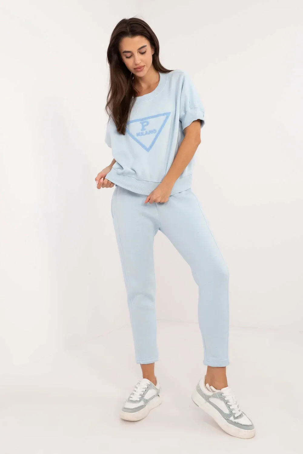 Zateplená dámská tepláková souprava v ležérním stylu, ideální pro chladnější dny, se skládá z mikiny a kalhot. Souprava je vyrobena z kombinace bavlny a polyesteru, poskytuje teplo, pohodlí a odolnost a je ideální pro každodenní nošení. Mikina standardní délky má krátké rukávy a kulatý výstřih, díky čemuž působí navzdory hřejivosti lehkým a ležérním dojmem. Na přední straně mikiny je módní potisk, který soupravě dodává originalitu a mladistvý nádech. Hladký design zachovává minimalistický, univerzální vzhled, který lze snadno kombinovat s dalšími kusy oblečení. Kalhoty mají zúžené nohavice a vysoký pas, který zvýrazňuje siluetu a zajišťuje pohodlí. V pase je elastický pásek, který zaručuje dokonalé přizpůsobení. Kalhoty jsou navíc vybaveny postranními nakládanými kapsami, takže jsou praktickou volbou pro každodenní nošení. Tato souprava je dokonalou kombinací pohodlí a stylu pro chladné všední dny.