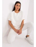Zateplená dámská tepláková souprava v ležérním stylu, ideální pro chladnější dny, se skládá z mikiny a kalhot. Souprava je vyrobena z kombinace bavlny a polyesteru, poskytuje teplo, pohodlí a odolnost a je ideální pro každodenní nošení. Mikina standardní délky má krátké rukávy a kulatý výstřih, díky čemuž působí navzdory hřejivosti lehkým a ležérním dojmem. Na přední straně mikiny je módní potisk, který soupravě dodává originalitu a mladistvý nádech. Hladký design zachovává minimalistický, univerzální vzhled, který lze snadno kombinovat s dalšími kusy oblečení. Kalhoty mají zúžené nohavice a vysoký pas, který zvýrazňuje siluetu a zajišťuje pohodlí. V pase je elastický pásek, který zaručuje dokonalé přizpůsobení. Kalhoty jsou navíc vybaveny postranními nakládanými kapsami, takže jsou praktickou volbou pro každodenní nošení. Tato souprava je dokonalou kombinací pohodlí a stylu pro chladné všední dny.