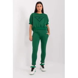 Zateplená dámská tepláková souprava v ležérním stylu, ideální pro chladnější dny, se skládá z mikiny a kalhot. Souprava je vyrobena z kombinace bavlny a polyesteru, poskytuje teplo, pohodlí a odolnost a je ideální pro každodenní nošení. Mikina standardní délky má krátké rukávy a kulatý výstřih, díky čemuž působí navzdory hřejivosti lehkým a ležérním dojmem. Na přední straně mikiny je módní potisk, který soupravě dodává originalitu a mladistvý nádech. Hladký design zachovává minimalistický, univerzální vzhled, který lze snadno kombinovat s dalšími kusy oblečení. Kalhoty mají zúžené nohavice a vysoký pas, který zvýrazňuje siluetu a zajišťuje pohodlí. V pase je elastický pásek, který zaručuje dokonalé přizpůsobení. Kalhoty jsou navíc vybaveny postranními nakládanými kapsami, takže jsou praktickou volbou pro každodenní nošení. Tato souprava je dokonalou kombinací pohodlí a stylu pro chladné všední dny.
