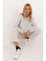 Dámská ležérní mikinová souprava, ideální pro každodenní vycházky, se skládá z mikiny a kalhot. Souprava je vyrobena z vysoce kvalitní směsi bavlny a polyesteru a poskytuje pohodlí a odolnost, zatímco jednobarevný vzor jí dodává univerzálnost. Mikina má dlouhé rukávy, kulatý výstřih a praktické kapsy s nášivkami na přední straně pro sportovní styl. Na přední straně je módní nápis, který upoutá pozornost a dodá celkovému vzhledu originalitu. Dlouhá délka mikiny z ní dělá pohodlný kousek šatníku, ideální pro kombinování s různými spodními díly. Kalhoty mají rovný střih nohavic a vysoký náplet, který zvýrazňuje siluetu a poskytuje pohodlí. V pase je vázačka pro individuální přizpůsobení a praktickým prvkem jsou postranní kapsy, ideální pro uložení drobností. Tento komplet je dokonalou kombinací stylu a pohodlí, skvělou volbou pro každodenní nošení.