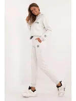 Dámská zateplená souprava sestávající z mikiny a kalhot, ideální pro chladnější dny. Je vyrobena ze směsi bavlny a polyesteru a poskytuje teplo a pohodlí. Dominantní melanžový vzor dodává stylový, ležérní nádech, zatímco malé nášivky decentně zpestřují design. Mikina má dlouhé rukávy a praktickou kapuci, která je ideální do nepříznivého počasí, zatímco kalhoty mají vysoký pas, nastavitelný pas se zavazováním pro dokonalé přizpůsobení. Stahovací šňůrky na nohavicích dodávají kalhotám sportovní vzhled a boční nakládané kapsy zajišťují pohodlí. Souprava ideální pro každodenní výlety a odpočinek v pohodlném stylu.