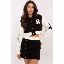 Elegantní a pohodlný dámský set ve stylu casual, ideální na každodenní příležitosti. Vyrobený z odolného polyesteru s podšívkou, poskytuje pohodlí nošení a moderní vzhled. Mikina s krátkou délkou má dlouhý rukáv, stojáček a praktické zapínání na stiskací knoflíky, které zdůrazňuje její sportovní charakter. Dekorativní nášivky na rukávu a přední části a vyšívání na druhém rukávu dodávají originalitu. Sukně s krátkou délkou je vybavena širokým pásem, což zaručuje pohodlné přizpůsobení a zdůraznění pasu. Hladký vzor setu mu dodává univerzálnost, skvěle se hodí jak k minimalistickým, tak k výraznějším stylizacím. Jedná se o praktický a módní set pro ženy, které chtějí spojit pohodlí s výrazným designem.