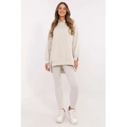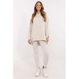 Dámský komplet skládající se z dlouhé mikiny a legín je ideální volbou pro ženy, které ocení pohodlí a styl ve svých každodenních outfitcích. Udržován v casualovém stylu, bude skvělý na procházku, nákupy nebo relaxaci doma. Mikina má prodloužený záda, co jí dodává moderní vzhled a zajišťuje dodatečný komfort nošení. Vyrobená z kombinace bavlny a polyesteru nabízí příjemný dotek a odolnost. S kapucí a dlouhým rukávem skvěle chrání před chladnými dny. Legíny s úzkými nohavicemi a vysokým pasem zdůrazňují siluetu a zároveň zajistí volnost pohybu. Vyrobené z bavlny s přídavkem elastanu se ideálně přizpůsobí tělu. Další výhodou je pruhovaný materiál, který přidává charakter a odlišuje je od ostatních modelů. Celkově jednotný, hladký vzor umožňuje snadné sladění doplňků a vytvoření souvislého každodenního vzhledu. Složení materiálu: Mikina: 70% bavlna, 30% polyester Legíny: 90% bavlna, 10% elastan