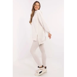 Kompletní dámský set skládající se z dlouhé mikiny a legín je ideální volbou pro ženy, které ocení pohodlí a styl ve svých každodenních outfitcích. V casualovém stylu je vhodný na procházky, nákupy nebo relaxaci doma. Mikina má prodloužený zádový díl, který jí dodává moderní vzhled a zajišťuje další pohodlí při nošení. Vyrobena z bavlněné směsi a polyesteru nabízí příjemný dotek a odolnost. S kapucí a dlouhým rukávem perfektně chrání před chladem v chladnějších dnech. Legíny se zužujícími nohavicemi a vysokým pasem zdůrazňují postavu a zároveň poskytují volnost pohybu. Vyrobena z bavlny s přídavkem elastanu, se skvěle přizpůsobují tělu. Další výhodou je pruhovaný materiál, který jim dodává charakter a odlišuje je od ostatních modelů. Celkový vzhled je jednotný, hladký, což umožňuje snadné sladění doplňků a vytvoření souvislého každodenního looku. Složení materiálu: Mikina: 70% bavlna, 30% polyester Legíny: 90% bavlna, 10% elastan
