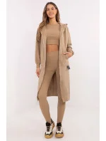 Dámský set skládající se z mikiny, topu a legín je harmonické spojení casual a sportovního stylu. Vytvořen s ohledem na každodenní pohodlí a aktivitu, skvěle poslouží jak při cvičení, tak při relaxaci. Mikina s prodlouženým střihem je praktickým řešením pro chladnější dny. Zapíná se na zip a je vybavena kapsami, což zajišťuje pohodlí a funkčnost. Vyrobená z kombinace bavlny, polyesteru a elastanu spojuje měkkost s pružností. Dlouhý rukáv a kapuce navíc chrání před větrem a chladem. Top s kulatým výstřihem je jednoduchý a zároveň univerzální, ideální pro celý set. Jeho složení z bavlny a elastanu zaručuje prodyšnost a pohodlí nošení. Legíny se zužujícími se nohavicemi a vysokým pasem zdůrazňují postavu a zároveň poskytují plnou volnost pohybu. Vyrobené z bavlny a elastanu jsou elastické a odolné. Dalším výrazným prvkem je proužkovaná struktura materiálu, která jim dodává jedinečný charakter. Celkově drženo v hladkém vzoru, skvěle zapadá do každodenního, sportovního vzhledu, nabízí styl i maximální pohodlí při nošení. Složení materiálu: Mikina: 72% bavlna, 22% polyester, 6% elastan Legíny a top: 90% bavlna, 10% elastan