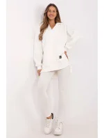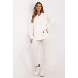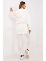 Dámský set skládající se z krátkého topu, dlouhé mikiny a legín je kombinací pohodlí a stylu, která se hodí do každodenních i sportovních outfitů. Udržován v casual a sportovním stylu, skvěle se hodí na procházku, trénink nebo relaxační den doma. Mikina s prodlouženým střihem je praktickým a módním prvkem setu. Vyrobená z teplé směsi bavlny a polyesteru, poskytuje teplo a pohodlí v chladnějších dnech. S prostornou kapucí, dlouhým rukávem a kapsou typu klokaní není jen funkční, ale i stylová. Výstřih ve tvaru písmene V jí dodává originální vzhled a nášivka na přední straně přidává charakteru. Top s klasickým, kulatým výstřihem je vyroben z bavlny s příměsí elastanu, což zaručuje pohodlí a dokonalé přizpůsobení tělu. Kratší střih zdůrazňuje siluetu, skvěle ladí s vysokým pasem legín. Legíny se zúženými nohavicemi a vysokým pasem zajišťují pohodlí a volnost pohybu. Jejich elastický materiál vyrobený z bavlny s přídavkem elastanu skvěle přiléhá k tělu. Pruhovaná struktura materiálu jim dodává jedinečný styl, podtrhuje moderní vzhled celého setu. Celková hladká vzorová struktura tvoří souvislý, moderní outfit, ideální pro aktivní ženy, které ocení jak pohodlí, tak módní design.