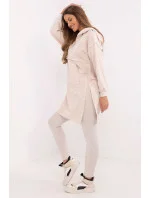 Dámský set skládající se z dlouhé mikiny a legín je ideální volbou pro každodenní stylování v casual stylu. Praktický, pohodlný a stylový, skvěle poslouží při procházkách, setkáních s přáteli nebo relaxaci v domácím prostředí. Mikina s prodlouženým střihem vyrobená z měkké a elastické směsi bavlny a elastanu zajišťuje maximální pohodlí při nošení. Vybavena prostornou kapucí a dlouhým rukávem, skvěle se hodí do chladnějších dnů. Kapsa typu klokánek vpředu dodává funkcionalitu a casual charakter. Legíny s rozšiřujícími se nohavicemi a vysokým pasem zdůrazňují postavu a zároveň zaručují plnou volnost pohybu. Vyrobené z bavlny s přídavkem elastanu se ideálně přizpůsobují tělu, zajišťují pohodlí po celý den. Set udržovaný v hladkém vzoru tvoří harmonický celek, který lze snadno doplnit oblíbenými doplňky. Jedná se o skvělé řešení pro ženy, které si cení stylu a pohodlí každý den.