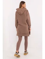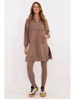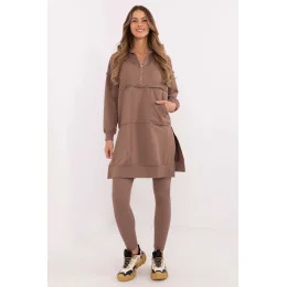 Dámská sada skládající se z dlouhé mikiny a legín je ideální volbou pro každodenní stylování v ležérním stylu. Praktická, pohodlná a stylová, skvěle poslouží při procházkách, setkáních s přáteli nebo relaxaci v domácím útulku. Mikina s prodlouženým střihem vyrobená z měkké a elastické směsi bavlny a elastanu zajistí maximální pohodlí nošení. Vybavená prostornou kapucí a dlouhým rukávem, skvěle se hodí do chladnějších dní. Kapsa typu klokánek vpředu přidává funkčnost a ležérní charakter. Legíny se štíhlými nohavicemi a vysokým pasem zdůrazňují postavu a zároveň zaručují plnou volnost pohybu. Vyrobené z bavlny s přídavkem elastanu se ideálně přizpůsobují tělu, zajišťují pohodlí po celý den. Sada v hladkém vzoru tvoří harmonický celek, který lze snadno doplnit oblíbenými doplňky. Jedná se o skvělé řešení pro ženy, které si cení stylu a pohodlí každý den.
