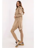 Dámský set skládající se z dlouhé mikiny a legín je ideální volbou pro každodenní stylizace v casualovém stylu. Praktický, pohodlný a stylový, skvěle poslouží při procházkách, setkáních s přáteli nebo relaxaci v domácím útulku. Mikina s prodlouženým střihem vyrobená z měkké a elastické směsi bavlny a elastanu zajistí maximální pohodlí při nošení. Vybavená prostornou kapucí a dlouhým rukávem, skvěle se hodí do chladnějších dnů. Kapsa typu klokánek vpředu přidává funkčnost a casualový charakter. Legíny se zužujícími se nohavicemi a vysokým pasem zdůrazňují postavu, zároveň zaručují plnou volnost pohybu. Vyrobené z bavlny s přídavkem elastanu se ideálně přizpůsobují tělu, zajistí pohodlí po celý den. Set s hladkým vzorem tvoří harmonický celek, který lze snadno doplnit oblíbenými doplňky. Skvělé řešení pro ženy, které oceňují styl a pohodlí každý den.