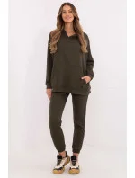 Dámský teplý set je perfektní kombinací pohodlí a stylu, ideální na každodenní aktivity. Vyrobený z měkké směsi bavlny a polyesteru zajišťuje pohodlí nošení a odolnost materiálu. Mikina má klasický, ležérní střih s dlouhými rukávy zakončenými pružnými manžetami. V přední části je praktická klokaní kapsa, která dodává sportovní charakter a je vhodná pro uložení drobností. Hladký vzor mikiny z ní činí univerzální kousek snadno stylizovatelný na každý den. Kalhoty se vyznačují vysokým pasem, který zdůrazňuje postavu, a nohavicemi zakončenými pružnými manžetami pro ideální přizpůsobení. Boční, zasouvací kapsy jsou praktickým prvkem, který zvyšuje funkčnost kalhot. Tento set je skvělou volbou pro ženy, které ocení pohodlí a stylový vzhled na každý den. Hladká struktura a decentní design z něj činí skvělý outfit na jakoukoli příležitost v ležérním stylu.