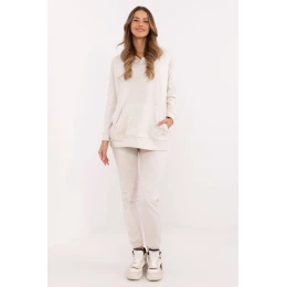 Dámský teplý set je perfektní kombinací pohodlí a stylu, ideální na každodenní aktivity. Vyrobený z měkké směsi bavlny a polyesteru, poskytuje pohodlí a odolnost materiálu. Mikina má klasický, ležérní střih s dlouhými rukávy a manžetami. Na přední straně je praktická kapsa typu klokánek, která dodává sportovní charakter a je ideální pro uložení drobností. Hladký vzor mikiny z ní dělá univerzální kus, který je snadno kombinovatelný na každý den. Kalhoty se vyznačují vysokým pasem, který zdůrazňuje postavu, a nohavicemi s manžetami pro ideální přizpůsobení. Boční kapsy jsou praktickým prvkem, který zvyšuje funkčnost kalhot. Tento set je skvělou volbou pro ženy, které ocení pohodlí a stylový vzhled na každý den. Hladká struktura a decentní design dělají tento set vhodným na každou příležitost v ležérním stylu.