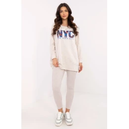Dámská souprava sestávající z mikiny a legín je dokonalou kombinací pohodlí a stylu. Mikina má na přední straně potisk, který jí dodává jedinečný charakter a podtrhuje moderní design. Je vyrobena ze směsi vysoce kvalitní bavlny, polyesteru a elastanu, takže poskytuje pohodlí a odolnost. Legíny se vyznačují vysokým pasem, který dokonale zvýrazňuje pas a zajišťuje pohodlí při každodenních aktivitách. Zúžené nohavice dokonale padnou, zatímco žebrovaná tkanina dodává jemnou strukturu a módní vzhled. Souprava je ideální pro každodenní výlety, procházky nebo chvíle odpočinku doma. Díky kombinaci univerzálního stylu a funkčnosti je skvělou volbou pro všechna roční období.