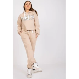 Volný set oblečení, skládající se z mikiny a kalhot, je ideální volbou pro každodenní stylizace. Mikina s potiskem na přední straně a praktickou kapucí dodává sadě moderní, městský charakter. Šňůrky u mikiny a kalhot umožňují nastavení, což zajišťuje pohodlí a individuální přizpůsobení. Kalhoty s dlouhými nohavicemi, zakončené elastickými manžetami, zaručují stylový vzhled a pohodlí nošení. Vysoký pas kalhot a boční kapsy přidávají funkčnost a zdůrazňují pohodlí celého setu. Vyrobený z převažující bavlny je set měkký, vzdušný a ideální na volný den doma nebo na procházku.