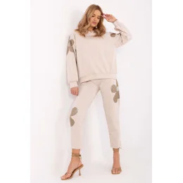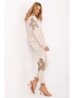 Tento elegantní a zároveň neuvěřitelně pohodlný teplý komplet je ideální volbou pro každodenní stylizace. Vyrobený z vysoce kvalitní směsi viskózy, bavlny a elastanu, poskytuje měkkost, prodyšnost a ideální přizpůsobení postavě. Mikina s dlouhým rukávem a praktickou kapucí chrání před chladem, a decentní vložky ve tvaru květů s ozdobnými čiróny dodávají jedinečný charakter. Kalhoty s vysokým pasem a přímými nohavicemi zaručují pohodlí, a boční kapsy zvyšují funkčnost. Stylové květinové aplikace se objevují také na kalhotách, vytvářející souvislý a módní celek. Je to ideální volba pro ženy, které ocení kombinaci ležérního stylu s nádechem elegance. Skvěle se hodí na každý den, poskytující pohodlí a efektní vzhled.