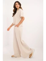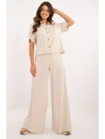 Lehká mušlová sada skládající se z košile a kraťasů je ideální volbou na teplé každodenní dny. Vyrobená z příjemného na dotek, prodyšného bavlněného materiálu zajišťuje maximální pohodlí a volnost pohybu. Hladký materiál zdůrazňuje minimalistický, ležérní styl sady. Košile s krátkým rukávem, límečkem a zapínáním na knoflíky vypadá elegantně a moderně, a dodatečný pásek k zavázání umožňuje zdůraznit pas a dodat ženský tvar postavě. Kraťasy s rovnými nohavicemi a vysokým pasem jsou vybaveny praktickými bočními kapsami. Sada se skvěle hodí na každodenní nošení pro procházku, nákupy nebo setkání s přáteli.