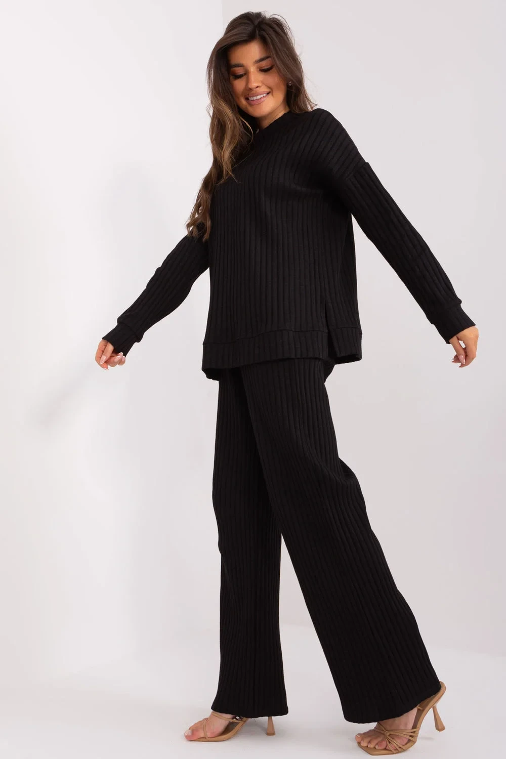 Pohodlný a stylový dámský set z pruhované látky, skvělý na každý den i do práce. Vyrobený z vysoce kvalitní bavlny s přídavkem elastanu, poskytuje pohodlí, pružnost a ideální přizpůsobení siluetě. Hladká struktura spolu s pružením mu dodává jemný, moderní charakter. Mikina s volným střihem má dlouhý rukáv a klasický kulatý výstřih, co ji činí univerzální a pohodlnou. Kalhoty s vysokým pasem a širokými nohavicemi zaručují volnost pohybu a boční vložené kapsy přidávají funkcionalitu. To je skvělá volba pro ženy, které ocení ležérní styl, pohodlí a módní vzhled!