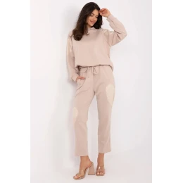 Dámský teplákový set je ideální kombinací pohodlí a stylu na každý den. Skládá se z mikiny s kapucí a kalhot s vysokým pasem, které se skvěle přizpůsobují postavě. V pasu je praktické šňůrkování, umožňující regulaci obvodu. Jak mikina, tak kalhoty mají jednoduchý, minimalistický střih, který se hodí do každodenních outfitů. Dlouhé nohavice a rukávy zajišťují pohodlí nošení a boční kapsy přidávají funkcionalitu. Materiál z polyesteru, bavlny a elastanu je měkký, příjemný na dotek a dobře padne na tělo. Hladký vzor doplňují jemné nášivky ve tvaru srdce umístěné na rukávech a nohavicích, dodávajíc celku výjimečný charakter. Je to skvělá volba na každodenní aktivity, relaxaci doma nebo procházku.