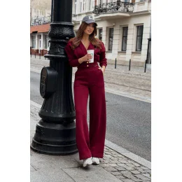 Dámský set je stylové a pohodlné spojení elegance s každodenním pohodlím. Volný svetr s výstřihem do srdce a zapínáním na knoflíky poskytuje volnost pohybu a skvěle padne na postavě. Široký lem dole přidává strukturu a decentně zdůrazňuje pas. Dlouhé kalhoty s širokými nohavicemi jsou vrcholem pohodlí a elegance, mají vkládané kapsy po stranách a elastický pásek, co zaručuje ideální přizpůsobení. Vyrobený z měkkého, příjemného na dotek materiálu, tento set se hodí jak do každodenního nošení, tak i do elegantnějších stylizací. Můžete ho nosit společně nebo kombinovat s jinými kousky oblečení, vytvářející nekonečné módní kombinace.