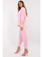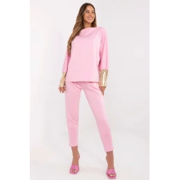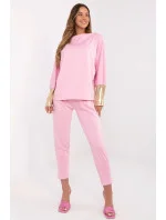 Elegantní a zároveň ležérní dámský set je ideální kombinací pohodlí a stylu. Vyrobený z měkké a elastické směsi viskózy a elastanu, poskytuje pohodlí po celý den. Mikina s dlouhým rukávem a lodním výstřihem jemně zdůrazňuje linii krku a zlaté lemování rukávů přidává nádech elegance. Kalhoty s vysokým pasem, šňůrkou v pase a bočními kapsami zajišťují pohodlí a skvělé padnutí. Nohavice s lemováním na spodku dodávají sportovní charakter. Díky jednoduchému vzoru a pečlivému zpracování se set skvěle hodí jak do každodenního života, tak do práce, vytvářejíc stylový a pohodlný outfit.