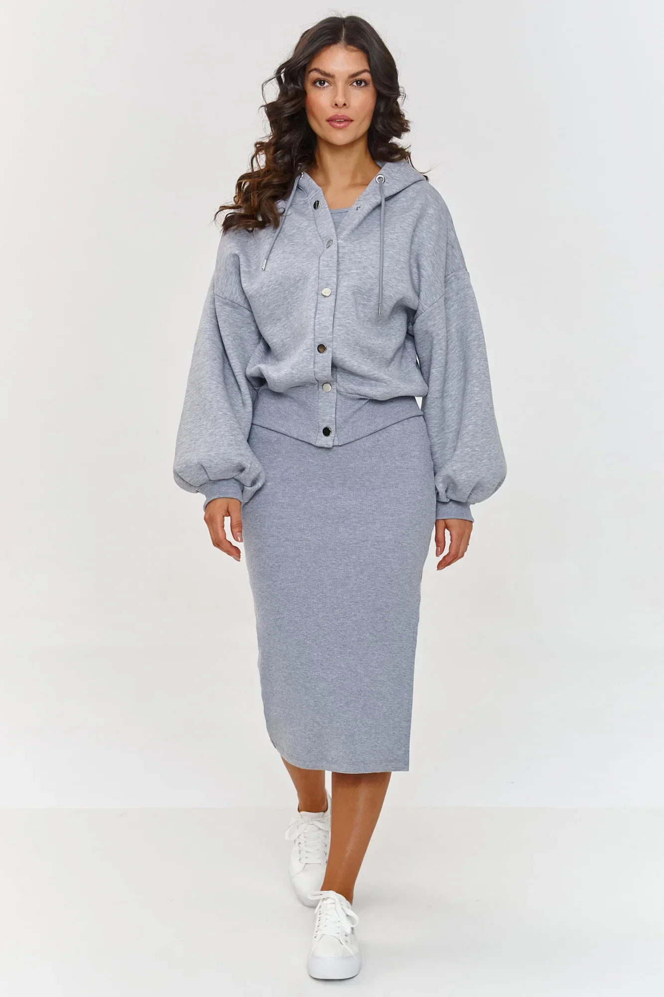 Jeden komplet, mnoho možností! Pruhované šaty bez rukávů a rozepínací mikina jsou sada vytvořená pro ženy, které si cení pohodlí a všestrannosti. Díky dvěma částem můžete přizpůsobit outfit každé roční období - v létě nosit jen šaty a v chladnějších dnech doplnit vzhled teplou mikinou. Pruhované šaty se přizpůsobí postavě, zdůrazní tvary, ale neomezuje pohyb a boční rozpark dodává ženskosti a smyslnosti. Mikina s kapucí má pohodlné zapínání, což ji činí vhodnou pro mnoho outfitů. Navíc je vyrobena z hustého dresového materiálu, což ji činí dostatečně univerzální, abyste ji mohli použít jako doplněk outfitu na každé roční období. Mikina je navržena v uvolněném, oversized střihu, což zajišťuje plnou volnost pohybu. a pruhy na rukávech a na spodku přidávají celkovému designu módní vzhled. Nasaďte šaty samostatně v teplejších dnech a užívejte si lehký, ženský vzhled. Když se ochladí, stačí přehodit mikinu s kapucí, abyste vytvořili ležérní, praktický outfit, ideální do práce, na procházku nebo rychlé nákupy. Tyto kousky můžete nosit společně nebo samostatně, kombinovat je s jiným oblečením, tenisky, boty, tenisky. Tato sada se hodí ke všemu! Vyberte si stylový a funkční komplet, který se přizpůsobí vašemu životnímu stylu!
