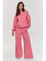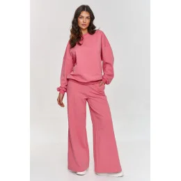 Tento teplákový set je ideální volbou pro ženy, které ocení funkčnost a styl. Sestava se skládá z oversized mikiny s dlouhými rukávy a volných kalhot, které vytvářejí pohodlný, ale stylový celek. Díky širokému střihu kalhoty poskytují plnou volnost pohybu a elastický pas se přizpůsobí postavě. Navíc jsou rozšířeny ke dnu, což dává celé sestavě výjimečný a dynamický charakter. Mikina s klasickým kulatým výstřihem a rukávy se zakončují lemováním doplňují celek, vytvářejí pohodlný a zajímavý set. Teplákový oblek je vyroben z měkkého a příjemného materiálu, který poskytuje pohodlí každý den. Díky jednoduchému, ale efektnímu střihu se sestava skvěle hodí do různých situací. Náš teplákový set je volbou, která spojuje volnost, funkčnost a moderní vzhled. Hodí se jak na relaxaci doma, tak na setkání s přáteli, nákupy nebo do každodenního života. Sestava skvěle ladí s oblíbenými teniskami, vytváří stylový, pohodlný a módní outfit.