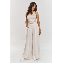 Volný dámský set je ideální volbou pro ženy, které hledají spojení pohodlí s elegancí. Součástí setu je přizpůsobený top s ramínky, který je navíc ozdobený záhyby na bocích a široké kalhoty s vysokým pasem, které společně vytvářejí módní a pohodlný outfit. Vyrobený z lehké, prodyšné viskózy, set je skvělý na teplé dny, poskytující pocit volnosti po celý den. Set je jednoduchý, ale efektní, spojující pohodlí s moderním vzhledem. Lze ho nosit jak denně, tak i na méně formální setkání. Skvěle ladí s bílými teniskami nebo sandálky, vytvářející ležérní vzhled, ale stejně dobře se hodí i k elegantnějším doplňkům. Nepopiratelnou výhodou tohoto setu je materiál, který se vyznačuje skvělou prodyšností, což znamená, že je příjemný na nošení i po dlouhé hodiny. Náš viskózový set je nabídkou na léto, která spojuje stylový design s pohodlím. Skvělý jak do práce, na společenská setkání, tak i na relaxační dny v zahradě. Investujte do tohoto módního setu, který vám zajistí pohodlí a styl po celý den!
