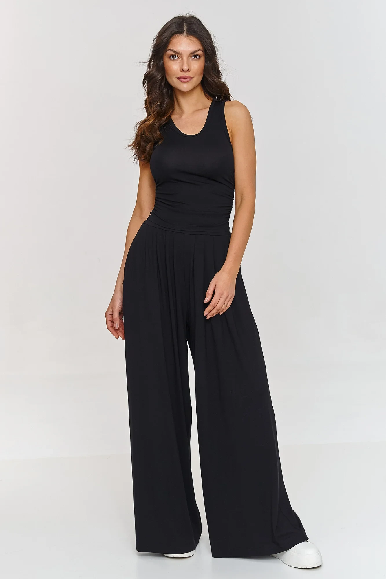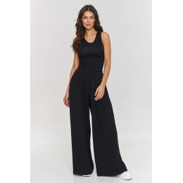 Volný dámský set je ideální nabídkou pro ženy, které hledají spojení pohodlí s elegancí. Součástí setu je přizpůsobený top na ramínka navíc ozdobený ruchy na bocích a široké kalhoty s vysokým pasem, které společně vytvářejí módní a pohodlný outfit. Vyrobený z lehké, prodyšné viskózy, set je skvělý na teplé dny, poskytující pocit volnosti po celý den. Set je jednoduchý, ale efektní, spojující pohodlí s moderním vzhledem. Lze ho nosit jak na běžné dny, tak na méně formální setkání. Skvěle ladí s bílými teniskami nebo sandálky, tvoříce casual look, ale stejně dobře se hodí k elegantnějším doplňkům. Nepopiratelnou výhodou tohoto setu je materiál, který se vyznačuje skvělou prodyšností, což z něj činí příjemného na nošení, dokonce i po dlouhé hodiny. Náš viskózový set je nabídkou na léto, která spojuje stylový design s pohodlím. Skvělý jak do práce, na společenská setkání, tak i na relaxační dny v zahradě. Investujte do tohoto módního setu, který vám zajistí pohodlí a styl po celý den!