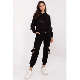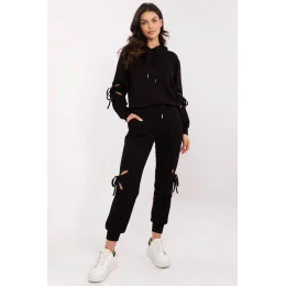 Casualový dresový komplet je ideální kombinací pohodlí a módního stylu. Vyroben z měkké směsi viskózy, polyesteru a elastanu, zajišťuje pohodlí při nošení a volnost pohybu. Mikina s kapucí má dlouhý rukáv a decentní rozparky na rukávech s ozdobnými šňůrkami, které dodávají celku originální charakter. Kalhoty s vysokým pasem a bočními kapsami na vkládání zaručují pohodlí, a náplety u nohavic zvýrazňují sportovní styl. Další výhodou jsou rozparky na nohavicích s ozdobnými šňůrkami, které dodávají neotřelý vzhled. Elastický pas se šňůrkou umožňuje dokonalé přizpůsobení. To je vynikající volba na každý den pro ženy, které si cení pohodlí a módního akcentu ve stylizacích. Komplet vyrobený z materiálu typu máslo, mimořádně měkkého, příjemného na dotek, dokonale se přizpůsobujícího tělu.