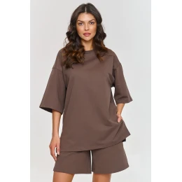 Tento pohodlný teplákový set je ideálním řešením pro ženy, které si cení pohodlí a nadčasovosti v každodenních stylizacích. Přesný střih trička zaručuje plnou volnost pohybu a stylový vzhled. Krátký rukáv a klasický kulatý výstřih činí z tohoto setu ideální nezávaznou základnu pro každodenní stylizace. Kraťasy mají elastický pas, co zajišťuje správné přizpůsobení a boční kapsy zdůrazňují jejich funkčnost. Volný střih kalhot a široké nohavice zajišťují plnou volnost pohybu a kratší délka z nich činí ideální volbu na teplé dny. Jednoduchý, ale efektní teplákový set spojuje minimalistický design s pohodlím, vytvářejíc skvělou možnost pro každodenní stylizace. Je to must-have na relaxaci doma, setkání s přáteli nebo krátké výlety. Jeho všestrannost však umožňuje také jeho využití při různých fyzických aktivitách.