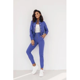 Elegantní a pohodlný dámský set, ideální na každý den a speciální příležitosti. Dlouhé kalhoty s úzkými nohavicemi krásně zdůrazňují siluetu a vsazené kapsy dodávají praktičnost. Díky elastickému pásku v pasu a zapínání na zip vpředu zajistí pohodlí a skvělé padnutí. Mikina s dlouhým rukávem a nízkým stojáčkem dodává celku elegantní charakter a její zapínání na zip usnadňuje nošení. Dekorativní knoflíky na přední straně přidávají jemný, stylový akcent. To je ideální sada pro ženy, které oceňují spojení pohodlí a módního vzhledu.