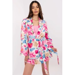 Dámský a elegantní kompletní set skládající se z saka a šortkových sukní je ideální nabídkou na každou příležitost - od každodenního výletu, přes práci, až po elegantní večírek. Květinový vzor dodává soupravě jemnou svěžest, zatímco elegantní střih podtrhuje postavu. Sako s dlouhými rukávy, klopami a zapínáním na knoflík bylo obohaceno o všité ramenní vycpávky, které krásně modelují linii ramen. Přiložený pásek na zavázání umožňuje přizpůsobit ho postavě a dodat stylizaci individuální charakter. Šortkové sukýnky s vysokým pasem kombinují ženský vzhled sukně s pohodlím šortek. Plisovaný přední díl a elegantní pásek zapnutý v pase vytvářejí efektivní akcent a zeštíhlují postavu. Absence kapes dodává celku lehkost a elegantní dokončení. Vyrobený z kombinace polyesteru a elastanu, set zajišťuje pohodlí nošení a vynikající vzhled po celý den.