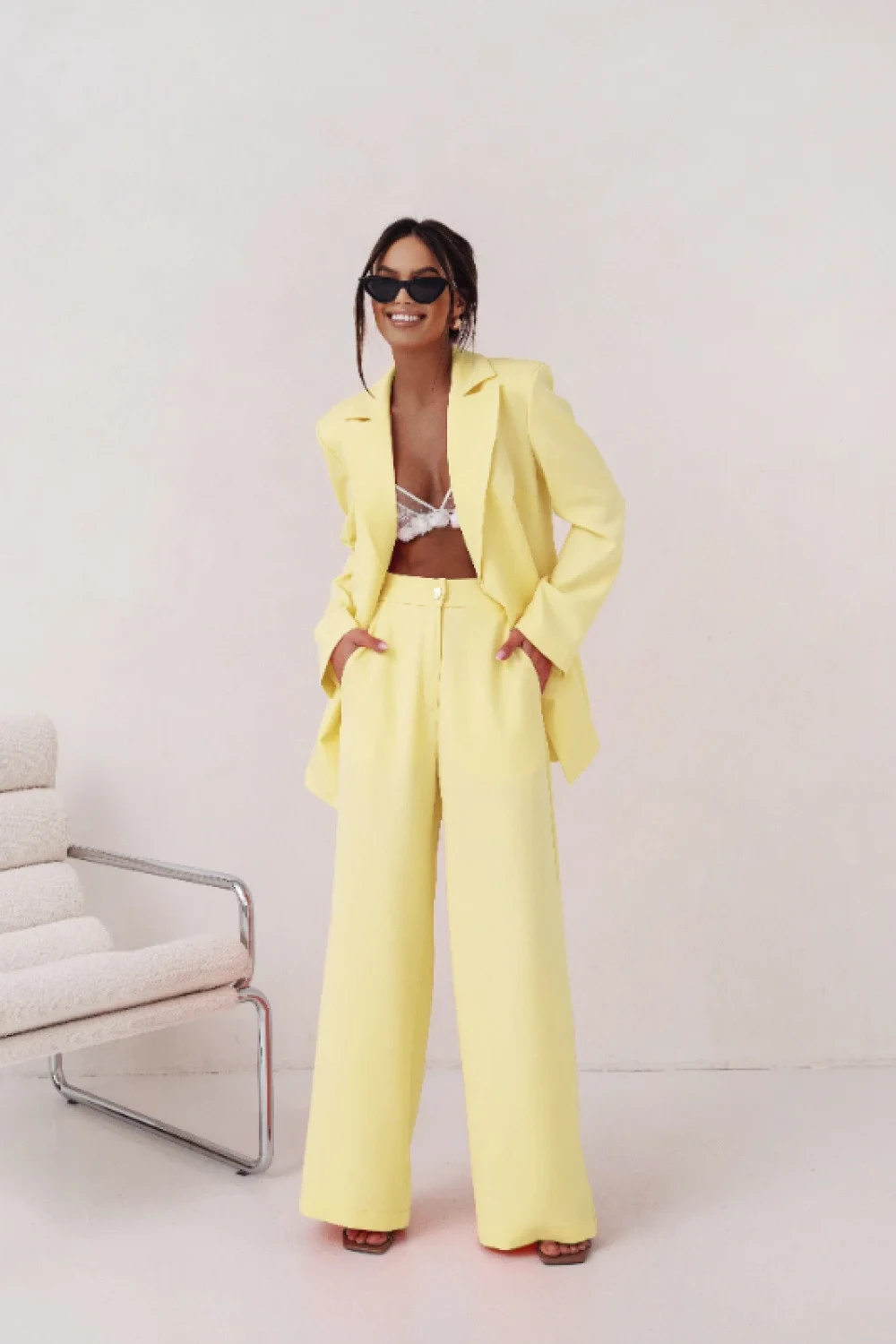 Představujeme kostým ve fuchsiové barvě elegantní nabídku pro ženy, které si cení eleganci a pohodlí. Tento jedinečný kostým skvěle kombinuje klasický střih s moderním stylem, co z něj činí skvělý výběr pro formální i neformální události. Skvělá volba pro ženy, které si přejí vyniknout z davu. Sako o délce 103 cm (S/M) nebo 105 cm (L/XL) skvěle zdůrazňuje postavu díky vysoké kvalitě materiálů. Vyrobeno z 95% viskózy a 5% elastanu, zajišťuje pohodlí a volnost pohybu. Rukávy o délce 76 cm udržují kostým elegantní, aniž by omezovaly pohyb. Střihem přizpůsobený postavě zdůrazní přednosti každé ženy. Tyto klasické, elegantní kalhoty ve spojení se sakem tvoří jednotný celek, ideální pro kancelář, setkání s přáteli nebo rodinné události. Kostým EMMA je investice do elegance a stylu, která jistě potěší každou ženu. Díky němu se budete cítit výjimečně, bez ohledu na příležitost.