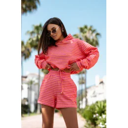 Pohodlný a stylový teplákový set, ideální pro každodenní volno a aktivní odpočinek. Mikina s dlouhým rukávem s lemováním je vybavena praktickou kapucí a šňůrkou na spodku, která umožňuje přizpůsobit střih postavě. Krátké kraťasy s širokým elastickým pásem zajistí pohodlí při nošení a vložené kapsy přidávají funkcionalitu. Měkký a příjemný materiál na dotek zaručí, že tento set se skvěle hodí jak doma, tak na procházku nebo během víkendového odpočinku.