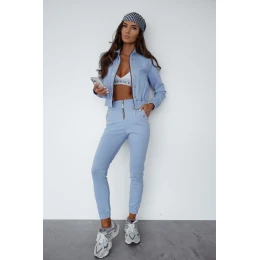 Elegantní a pohodlný dámský set, ideální na každý den a speciální příležitosti. Dlouhé kalhoty s úzkými nohavicemi krásně zdůrazňují postavu a vsunuté kapsy dodávají praktičnost. Díky elastické gumičce v pase a zapínání na zip vpředu zajistí pohodlí a skvělé padnutí. Mikina s dlouhým rukávem a nízkým stojánkem dodává celku elegantní charakter a její zapínání na zip usnadňuje nošení. Ozdobné knoflíky vpředu přidávají jemný, stylový akcent. Je to ideální sada pro ženy, které oceňují spojení pohodlí a módního vzhledu.