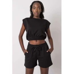 Dámský set skládající se z mikiny a kraťasů je ideální volbou na každodenní nošení a sportovní styly. Hladký, jednolitý materiál dodává celku minimalistický, moderní charakter. Mikina s krátkým střihem, kulatým výstřihem a vsazenými polštářky na ramenou decentně zdůrazňuje postavu a dodává jí strukturu. Bez rukávů zajišťuje volnost pohybu a pohodlí v teplejších dnech. Kraťasy s jednoduchým střihem a středním (regularním) pasem mají boční kapsy a praktické šňůrky v pasu pro individuální nastavení. Set vyrobený z směsi bavlny, polyesteru a elastanu spojuje přirozenou měkkost s elasticitou a odolností materiálu.