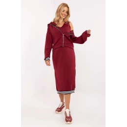 Dámský komplet ve stylu casual je ideální volbou na každodenní nošení, spojující pohodlí a ženský charakter. Vyrobený z materiálu typu měkké maslo (viskóza s přídavkem elastanu) okouzluje svou jemností, něhou a výjimečným pocitem při dotyku. Mikina s kapucí se zipem má dlouhé rukávy, praktické kapsy a ozdobné pružiny na manžetách, které dodávají celku sportovní nádech. Šaty s ozdobným zakončením midi délky, s širokými ramínky a výstřihem do srdce, skvěle ladí s mikinou, vytvářejíce souvislý a moderní vzhled. Tento komplet se hodí do každodenních outfitů, zaručuje pohodlí a volnost pohybu, a zároveň stylový a moderní vzhled.