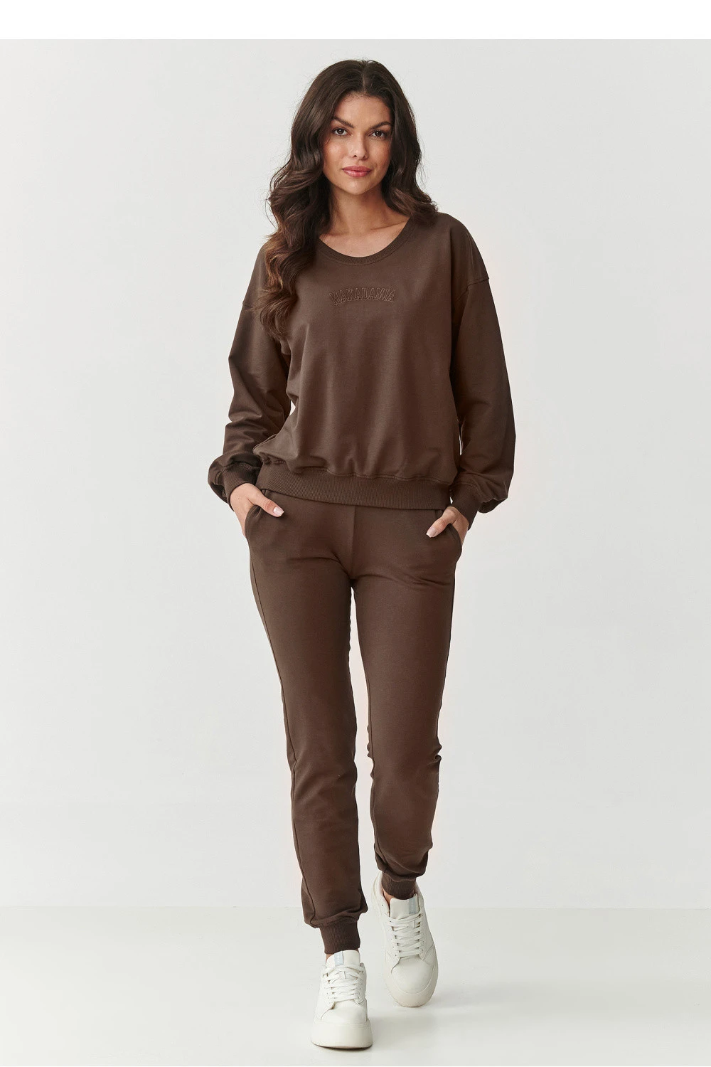 Tento dámský teplákový set je ideální kombinací pohodlí a stylového, každodenního looku. Vyrobený z vysoce kvalitního materiálu ve složení 95% bavlna a 5% elastan, poskytuje měkkost, pružnost a prodyšnost, díky čemuž se skvěle hodí po celý rok. Mikina má volný, ležérní střih s prodlouženou linií ramen, co jí dodává moderní charakter a skvěle padne na každé postavě. Na přední straně je umístěné malé, vyšívané logo, které jemně zdůrazňuje značkový charakter setu. Doplňující kalhoty s elastickým pasem a pohodlnými bočními kapsami jsou ideální volbou na každý den, spojující funkčnost s ženským střihem. Nohavice jsou zakončené lemy, díky čemuž se kalhoty dobře drží na místě a zdůrazňují nohy. Tento set se hodí jak jako domácí sada, tak i jako městský outfit. Minimalistický design, perfektní střih a pohodlí každý den jsou povinným prvkem moderního šatníku!