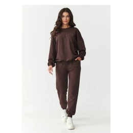 Stylová tepláková sada pro ženy, která kombinuje moderní design s výjimečným pohodlím. Vyrobena z vysoce kvalitní látky z 95% bavlny a 5% elastanu, zajišťuje měkkost, pružnost a dokonalé přizpůsobení postavě. Je to skvělá volba na každý den, bude se hodit doma, při procházkách, nákupech nebo víkendovém odpočinku. Hlavním prvkem této sady je vyšívaná aplikace se logem značky na přední straně mikiny, která jí dodává originální charakter a módní výraz. Mikina má volnější střih s obnovenou linií ramen a je ukončena pohodlnými manžetami na rukávech a dole, což jí dodává ležérní styl. Kulatý výstřih je také ukončen decentní manžetou, což zdůrazňuje jeho nadčasovost. Kalhoty mají elastický pas a manžety na nohavicích, díky čemuž se skvěle přizpůsobují postavě a zajišťují pohodlí po celý den. Tato tepláková sada je ideální kombinací funkčnosti a stylu. Hodí se jak jako sada, tak i samostatně. Univerzální střih pasuje k mnoha příležitostem a zaručuje volnost pohybu bez kompromisů. vsaďte na kvalitu, pohodlí a módní detail a vyberte si teplákovou soupravu s vyšívanou aplikací, která podtrhne Váš styl každý den!