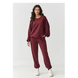 Stylový dresový set pro ženy, který spojuje moderní design s výjimečným pohodlím nošení. Vyrobený z vysoce kvalitního materiálu složeného z 95% bavlny a 5% elastanu, zajistí měkkost, pružnost a ideální přizpůsobení postavě. Je to skvělá volba na každý den, hodí se doma, během procházek, nákupů nebo víkendového odpočinku. Hlavním prvkem tohoto setu je vyšívaná aplikace s logem značky na přední straně mikiny, která jí dodává originální charakter a módní výraz. Mikina má volnější střih s obniženými rameny a je zakončená pohodlnými úzkými lemiky u rukávů a dole, což jí dodává ležérní styl. Kulatý výstřih je také zakončen decentním lemem, což zdůrazňuje jeho nadčasovost. Kalhoty mají elastický pas a úzké lemiky u nohavic, díky čemuž se skvěle přizpůsobují postavě a zajistí pohodlí po celý den. Tento dres je ideální kombinací funkčnosti a stylu. Hodí se jak jako set, tak samostatně. Univerzální střih se hodí k mnoha příležitostem a zaručuje volnost pohybů bez kompromisů. Sáhněte po kvalitě, pohodlí a módním detailu a vyberte si dres s vyšívanou aplikací, který zdůrazní Váš styl každý den!
