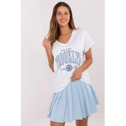 Casual dámský set skládající se z trička a plisované sukně, ideální na každodenní outfit. Tričko vyrobené z měkké bavlny s přídavkem elastanu má krátký rukáv, výstřih do srdce a moderní potisk na přední straně, který dodává celému outfitu charakter. Mini sukně s vysokým pasem je vyrobena z toho samého pohodlného materiálu a má vsazené šortky, které zajistí volnost pohybu. Plisovaná konstrukce dodává lehkost a ženskou eleganci, vytvářející set, který spojuje pohodlí s moderním casual stylem.