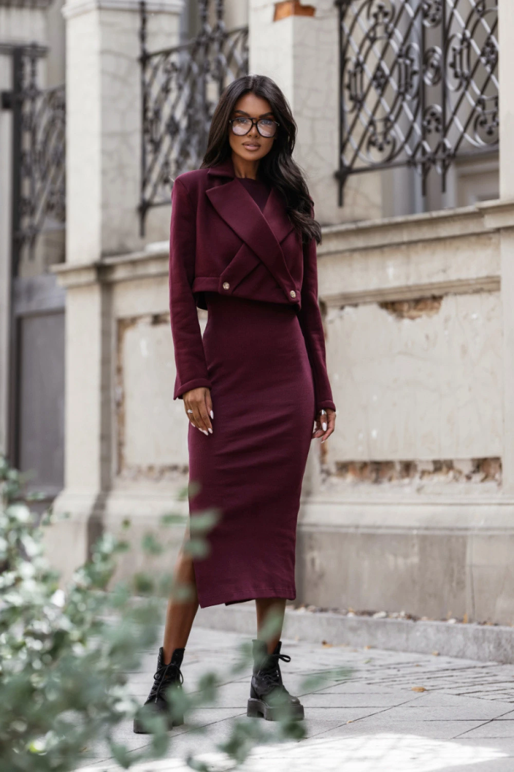 Představujeme sadu, ideální volbu pro ženy, které si cení elegance a pohodlí. Naše nabídka je elegantní sako a stylové šaty, které spolu skvěle ladí a vytvářejí jedinečný outfit na každou příležitost. Vytvořte si vlastní vzhled, který podtrhne vaši osobnost a sebejistotu. Sako v barvě borda je kvintesence klasiky. Nabízíme ho ve třech různých velikostech (S, M, L), což umožní ideální přizpůsobení postavě. Toto sako se jistě stane základem mnoha outfitů. Šaty dokončují set, nabízejí nejen estetiku, ale i pohodlí nošení. Sada je vyrobena z vysoce kvalitních materiálů, 95% bavlny a 5% elastanu, což z ní činí příjemnou a prodyšnou. Tento set je skvělou volbou na různé příležitosti, jak do každodenního života, tak i na speciální události.