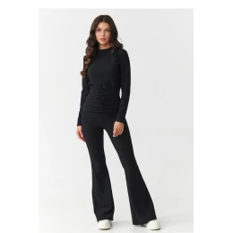 Vsadte na vzhled, který kombinuje eleganci a pohodlí! Tento jedinečný dámský set se skládá z přiléhavé košile s dlouhým rukávem a kalhot s vysokým pasem a rozšířenými nohavicemi. Vyrobený z vysoce kvalitní pruhované látky krásně zdůrazňuje postavu a poskytuje pohodlí po celý den. Košile má klasický střih s vysokým límcem a zapíná se vzadu na zip, co ji činí pohodlnou a zároveň velmi elegantní. Kalhoty s vysokým pasem zdůrazňují pas a modelují postavu a díky zvlnění v pasu dodávají postavě proporce, zatímco rozšířené nohavice typu "flare" opticky prodlužují nohy. K dispozici ve čtyřech nadčasových barvách: vínová ženská a smyslná, černá klasika, která se hodí ke všemu, čokoládová moderní a výrazná, béžová elegantní a decentní. Tento set se hodí na mnoho příležitostí od večerních setkání, přes slavnostní události, až po obchodní outfit. Stačí přidat oblíbené boty na podpatku a bižuterii, abyste vytvořili efektní a moderní vzhled.