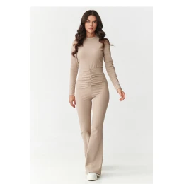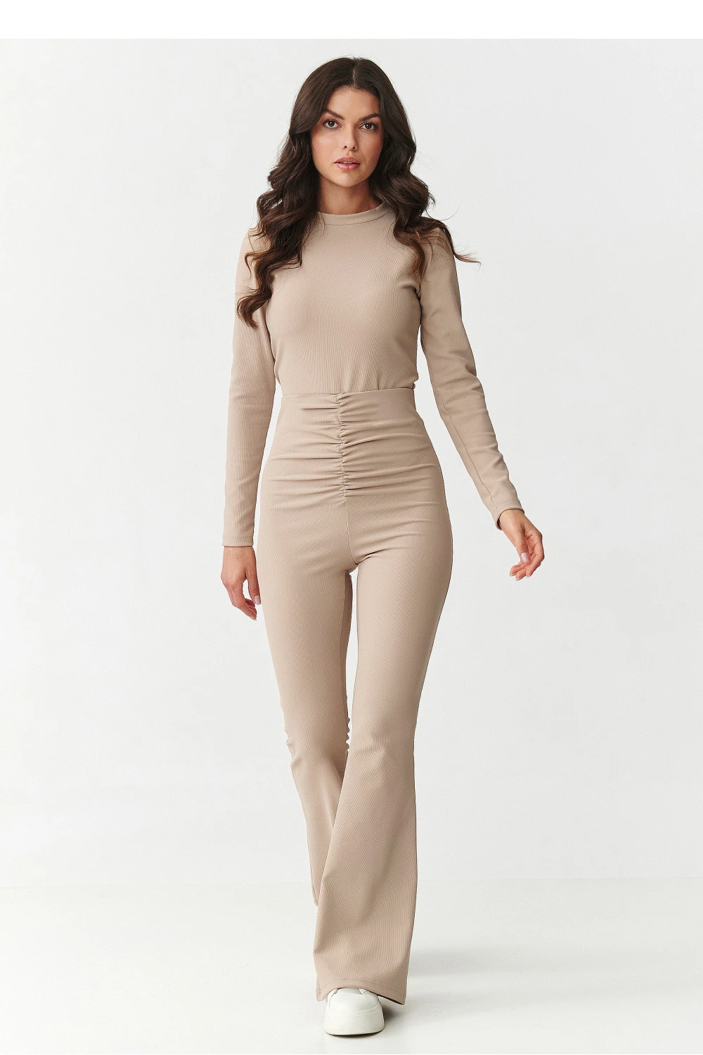 Vsadte na vzhled, který kombinuje eleganci a pohodlí! Tento jedinečný dámský set se skládá z přiléhavé košile s dlouhým rukávem a kalhot s vysokým pasem a rozšířenými nohavicemi. Vyrobený z vysoce kvalitní proužkované látky krásně zdůrazňuje postavu a poskytuje pohodlí po celý den. Košile má klasický střih s vysokým límcem a je zapínána vzadu na zip, co ji činí pohodlnou a zároveň velmi elegantní. Kalhoty s vysokým pasem zdůrazňují pas a tvarují postavu a díky zástřihu v pase dodávají postavě proporce, zatímco rozšířené nohavice typu flare opticky prodlužují nohy. K dispozici ve čtyřech nadčasových barvách: bordó je ženské a smyslné, černá klasika, která se hodí ke všemu, čokoládová moderní a výrazná, béžová elegantní a decentní. Tento set se osvědčí na mnoha příležitostech od večerních setkání, přes slavnostní události, až po obchodní outfit. Stačí přidat oblíbené podpatky a šperky, abyste vytvořili efektní a moderní vzhled.