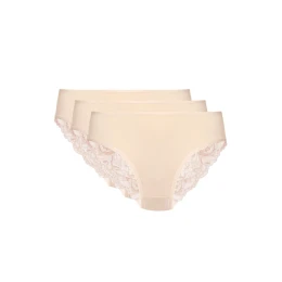 Trojpak figových bavlněných kalhotek s krajkovým zadním dílem. Krajkový zadní díl kalhotek nedělá pod oblečením viditelné stopy. Pohodlný střih, který neomezuje pohyb. Široký gumový pás účinně udržuje spodní prádlo na svém místě. Je pohodlné a nezařezává se do těla. Klin byl vyroben z bavlny s certifikátem OEKO-TEX, díky čemuž jsou příjemné a bezpečné pro intimní partie. Přední část kalhotek je vyrobena z bavlny z 100% polské přádelny. Kalhotky byly navrženy a vyrobeny v Polsku.