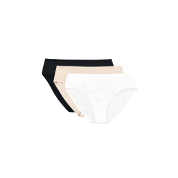 Trojpak fíků ve 3 univerzálních barvách, které ladí s každým oblečením: béžové, černé a bílé. Guma v pasu účinně udržuje spodní prádlo na svém místě. Pohodlný střih, který neomezuje pohyb, ideální pro každodenní nošení, i během menstruace. Kliny tanga jsou vyrobeny z bavlny s certifikátem OEKO-TEX, díky čemuž jsou příjemné a bezpečné pro intimní partie. Vyrobeno z 100% bavlny z polské přádelny. Tanga byla navržena a vyrobena v Polsku.