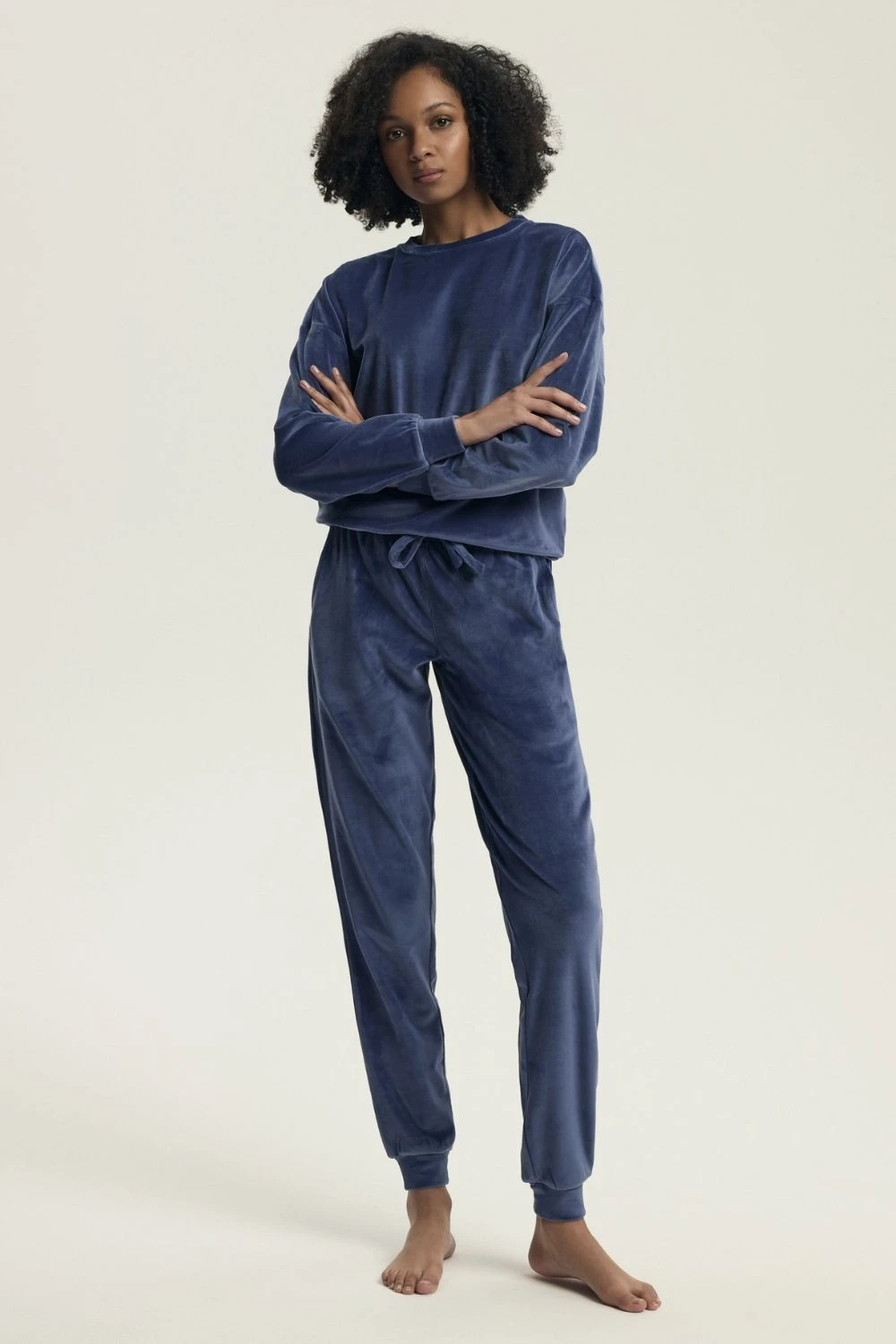 Pohodlný teplý set s volným, pohodlným střihem, ideální jak pro každodenní nošení, tak i jako domácí oblečení. Mikina s dlouhým rukávem s pružným lemem poskytuje volnost pohybu a sportovní vzhled. Dlouhé kalhoty s kapsami, širokou gumou v pasu a šňůrkami v pase zaručují skvělé přizpůsobení a pohodlí. Nohavice zakončené lemem dodávají celku moderní, ležérní charakter. Ideální set pro relaxaci, procházky nebo nezávazné každodenní outfity.