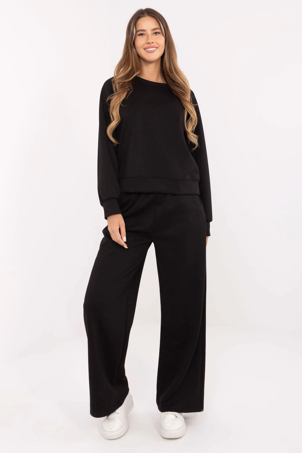 Dámský teplý set vyrobený z velmi měkkého materiálu typu "maslo" je ideální kombinací pohodlí a stylu pro každodenní nošení. Tkanina z viskózy, polyesteru a elastanu je mimořádně jemná, elastická a příjemná na dotek, díky čemuž se tento set skvěle hodí jak doma, tak i ve městě. Set se skládá z volného, ležérního topu a kalhot s vysokým pasem, ve kterých je gumový stahovací pás zaručující perfektní přizpůsobení postavě. Široké nohavice dodávají celému setu lehkost a moderní vzhled, zatímco boční kapsy zdůrazňují praktický charakter outfitu.
