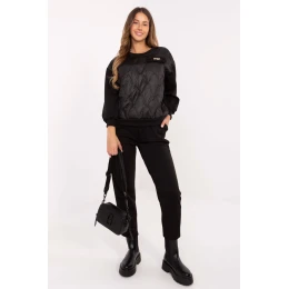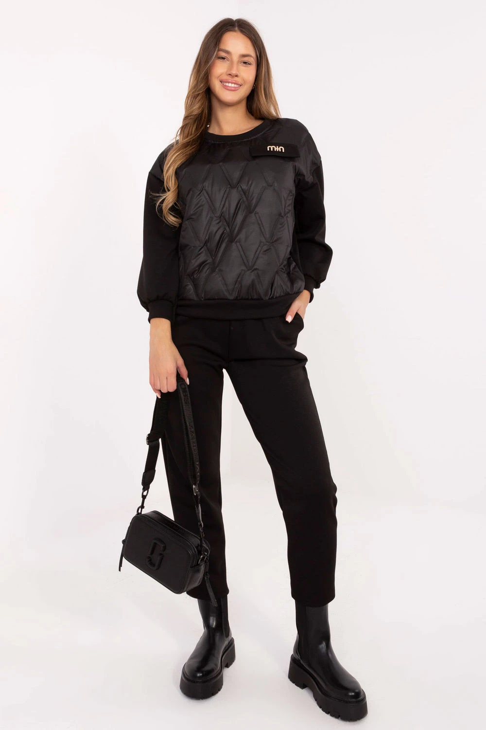 Elegantní a neuvěřitelně pohodlný dámský set v casual stylu, který se skvěle hodí na každý den. Vyrobený z vysoce kvalitní směsi viskózy a elastanu, vyznačuje se materiálem typu máslově měkkým, jemným a mimořádně příjemným na dotek. Součástí setu je mikina a kalhoty, vytvářející souvislou, pohodlnou celkovost. Mikina má kulatý výstřih, dlouhý rukáv a prošívaný přední díl zdobený broží, což jí dodává elegantní, ženský akcent. Kalhoty s vysokým pasem, se zužujícími se nohavicemi a bočními kapsami na zip zaručují pohodlí a praktičnost. Šňůrka v pasu umožňuje ideální přizpůsobení setu postavě. Toto spojení casual stylu s nádechem elegance je ideální jak pro nošení doma, tak i během každodenních vycházek.