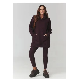Vsadte na pohodlí a styl v jednom! Náš dámský set se skládá z delší mikiny s kapucí a legín ve stejném barevném provedení. Mikina má módní oversized střih a praktickou kapsu typu klokanka, ve které si zahřejete ruce nebo schováte drobnosti. Kvalitní, měkký materiál zajistí pohodlí po celý den, ideální jak pro každodenní stylizace, tak i na volné víkendy doma. Legíny se přizpůsobí postavě, zdůrazní její výhody a elastický materiál zajistí plnou volnost pohybu. Set můžete nosit společně nebo samostatně, vytvářející nekonečné, moderní stylizace.