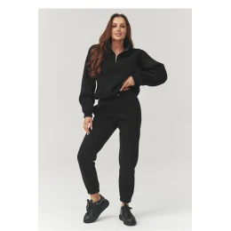 Stylová dámská tepláková souprava ve velikosti UNI je ideální kombinací pohodlí a módního vzhledu. Vyrobená z měkké, příjemné látky skvěle poslouží jak na každý den, tak během víkendového odpočinku nebo cestování. Klasické barvy dodávají celku univerzální charakter a snadno se hodí k různým stylizacím. Další výhodou soupravy jsou ozdobné prošívky táhnoucí se po celé délce nohavic, které opticky prodlužují nohy. Mikina s volným střihem s krátkým zipem pod krkem a spodní částí s nastavitelnými šňůrkami zajišťuje pohodlí nošení a módní, sportovně-ležérní vzhled. Teplákové kalhoty s elastickým pasem mají sevřené nohavice zakončené manžetami zdůrazňující moderní vzhled.